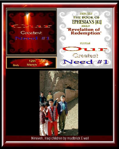 Our Greatest Need ##3  26th March 2013  Bob Our Greatest Need ##4  2nd April 2013  Bob